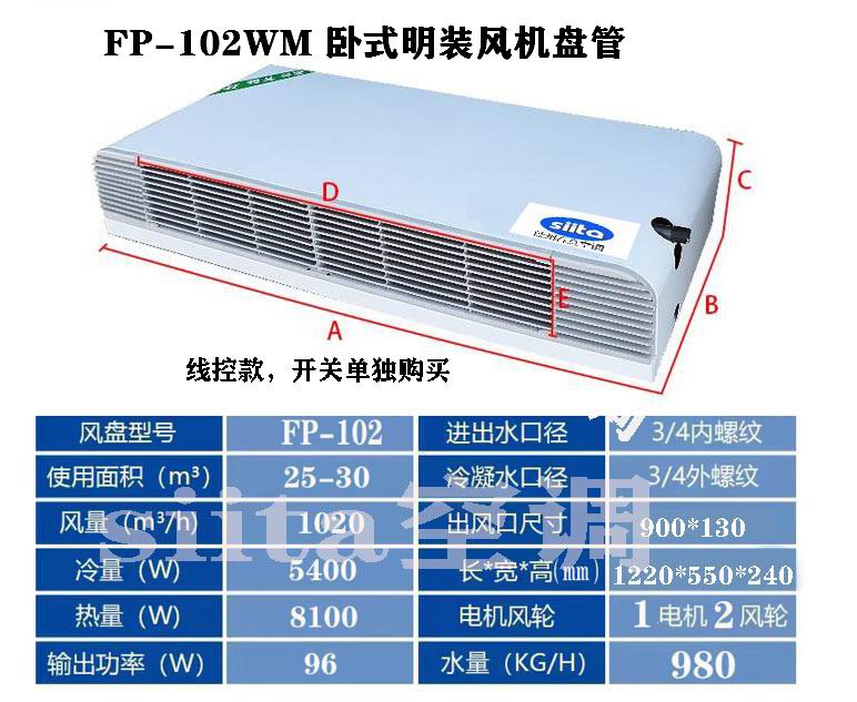 安裝方式:“臥式” 指設(shè)備水平安裝,通常貼緊天花板或吊掛在房間上部。“明裝” 同樣意味著其機(jī)身、進(jìn)出水管、冷凝水管及電源線均明敷在室內(nèi)可見位置,無需吊頂包裹。