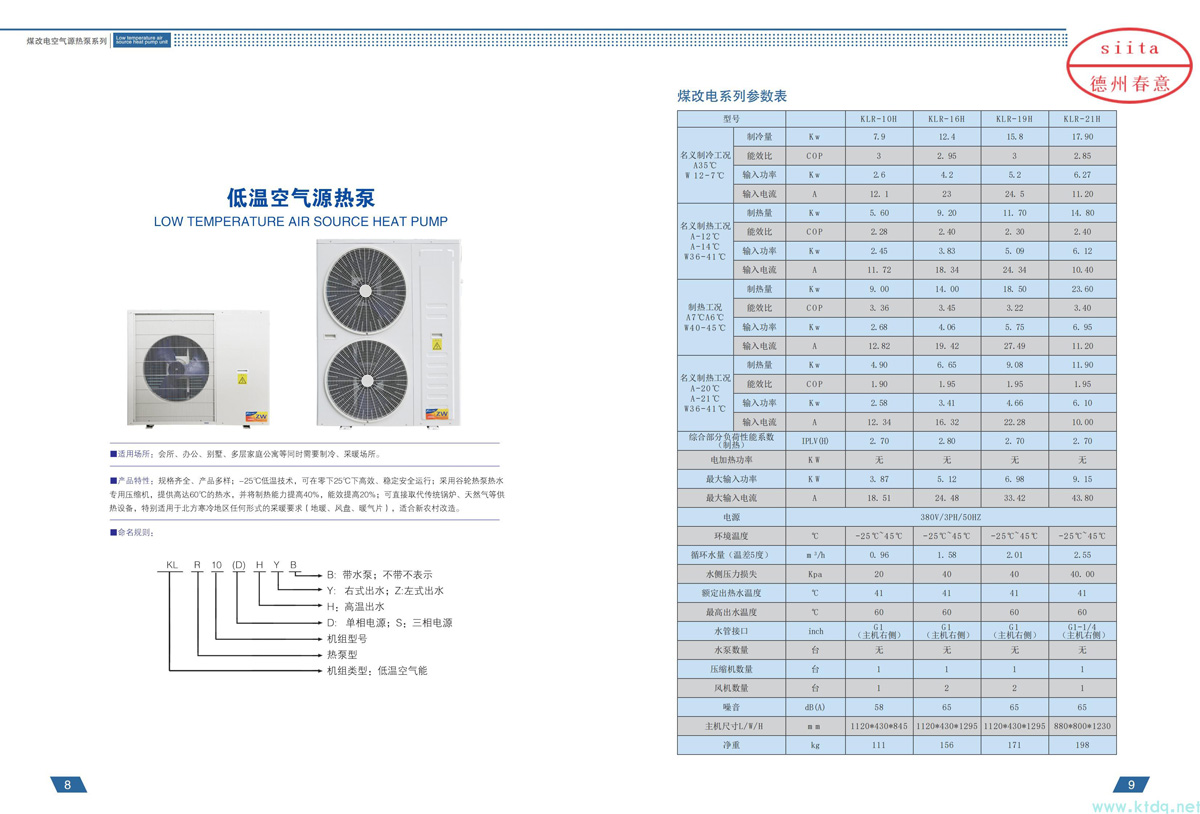 超低溫空氣源熱泵維護(hù)費(fèi)用低。由于空氣源熱泵機(jī)組的各機(jī)頭型式規(guī)格相同,既可互為備用,又能使維修備件量減至***少,具有較高的運(yùn)行可靠性和通用性。由于采用微電腦進(jìn)行控制,使多機(jī)頭機(jī)組的復(fù)雜操作管理變得簡單易行。